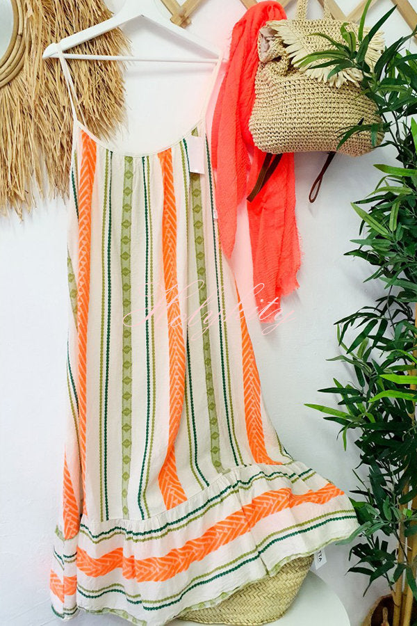 Happy Sunday Linen Blend Ethnic Print A-line Cami Maxi Dress